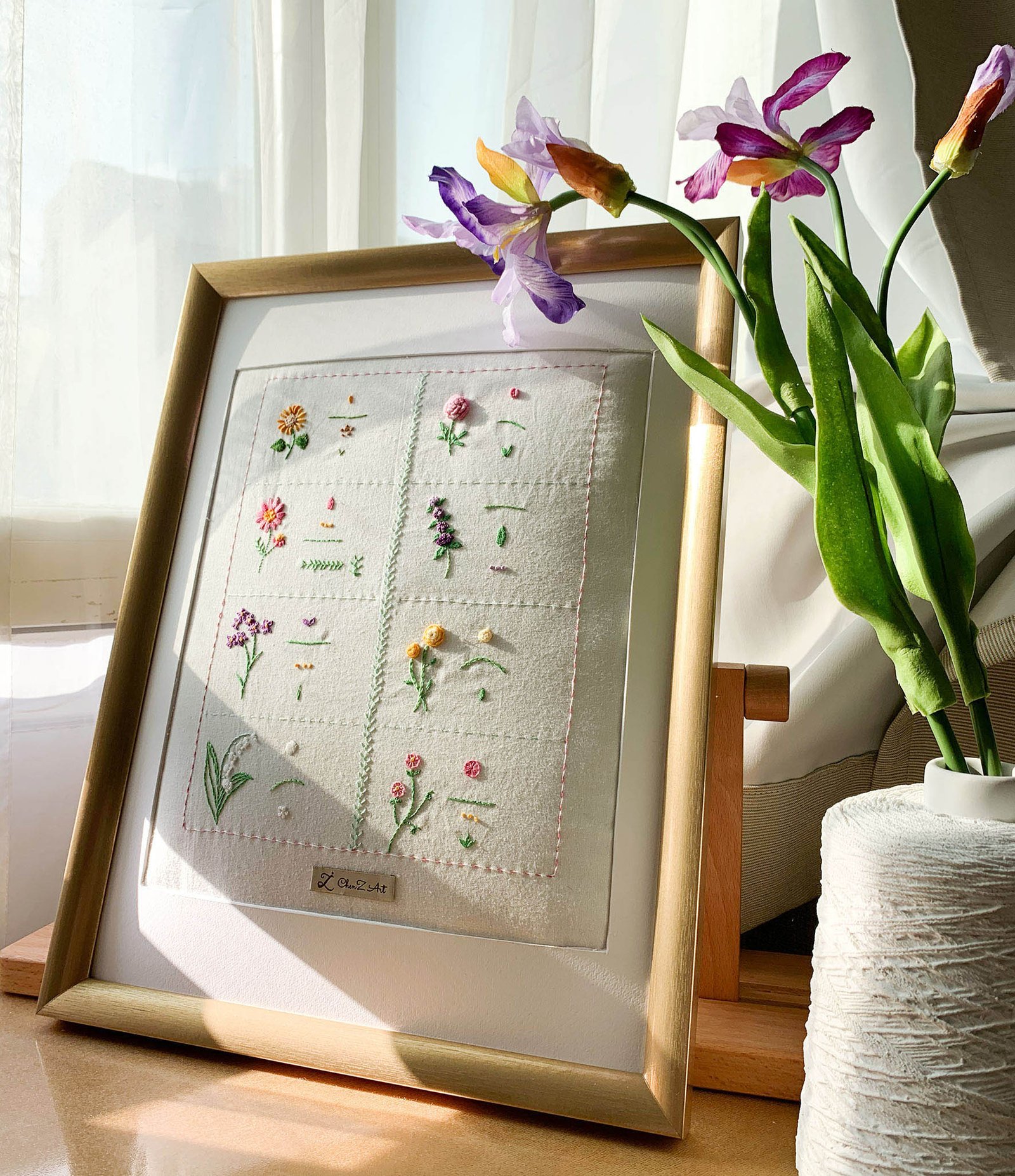 عدة التطريز اليدوي الخاصة بدورة الأزهار، صُممت هذه الدروة للتأسيس السليم لأهم غرز التطريز اليدوي بمشروع جميل ذات ألوان هادئة وبهية.