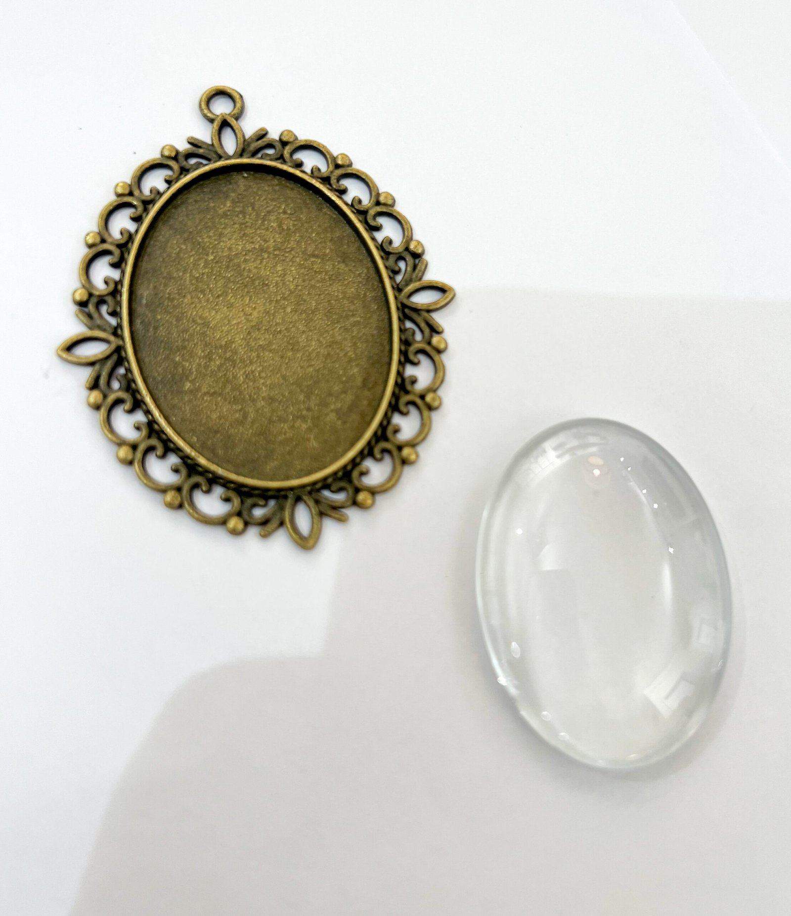 قلادة معدنية بيضاوية بلون ذهبي معتق وإطارمزخرف أنيق لإبراز الجمال البسيط في تصاميمك.