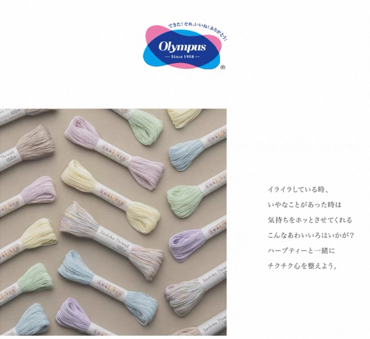 مجموعة Sashiko Awai-iro من شركة اولمبس Olympus خيط ساشيكو ياباني أصلي ماركة اولمبس ٦ فتلات، ١٠٠٪ قطن، جودة عالية طول الخيط ٤٠ متر، ألوان باستيل مختلفة، يُرجى ذِكر رقم لون الخيط عند الطلب