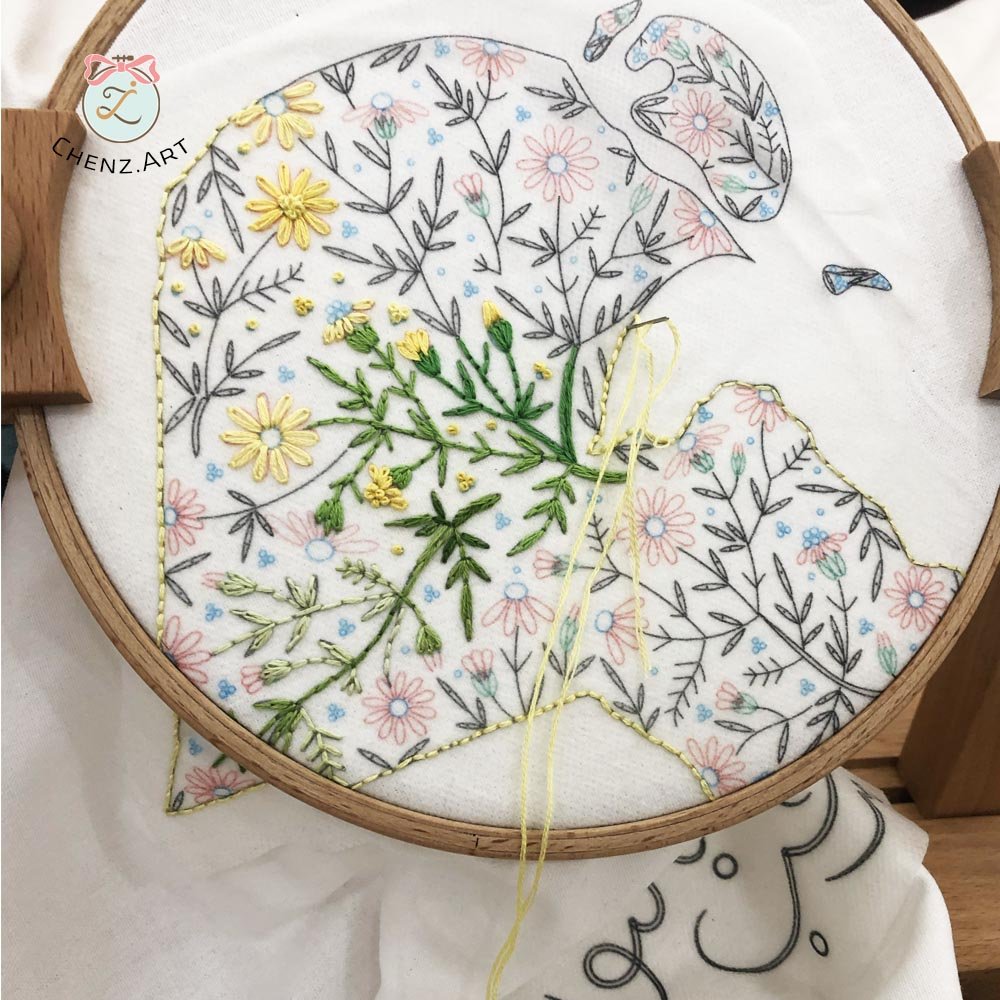 It designed to be stitched with easy embroidery stitches.